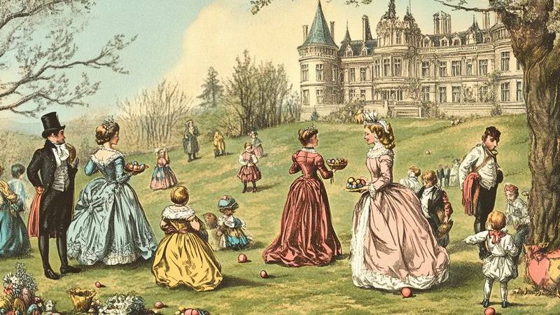 Ez a királyi családban is szokás volt, amelyre ékes bizonyíték, hogy a fiatal Viktória hercegnő egy 1833 április naplóbejegyzésében azt írja, hogy a „Mama szép festett és díszes tojásokat készített, és mi megkerestük őket”.